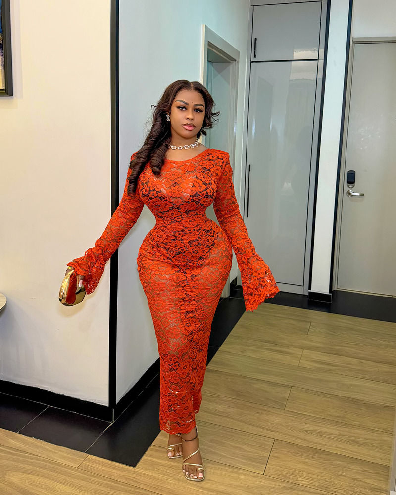 living in a timeless fashion, the alluring has got the most unique look with its finest quality Chantilly fabric. comes with a bodysuit or a dress inner to suit your personality. model is wearing medium.